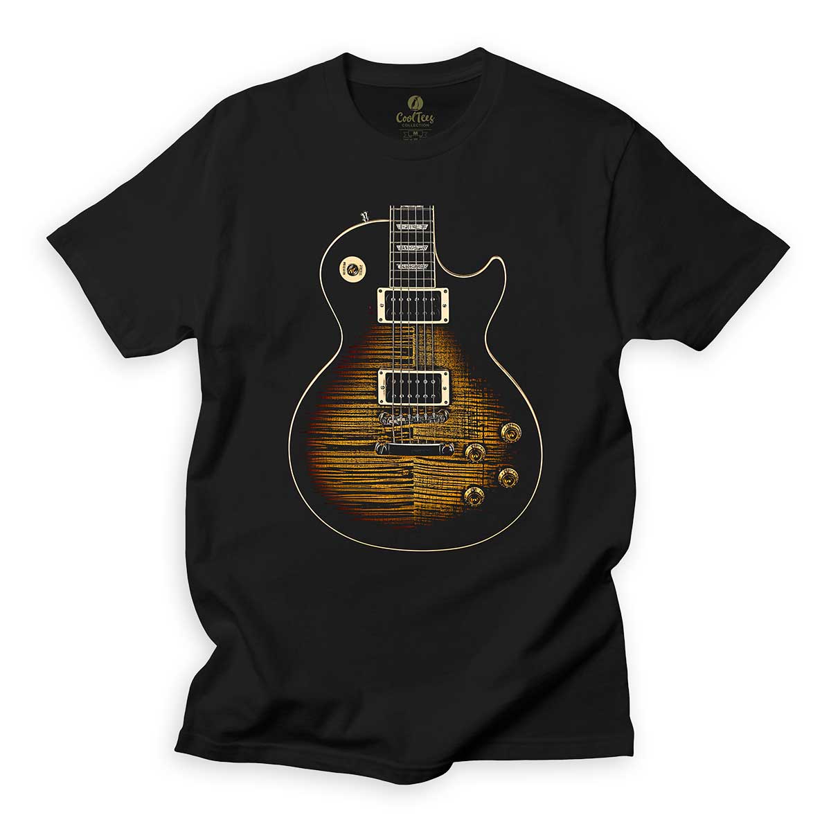 A estampa inspirada em musica e guitarras traz uma interpretação artística da classica Guitarra Gibson Les Paul, perfeita para você usar nos ensaios da banda ou em shows de rock. Mostre seu amor pela musica com essa camiseta criativa.