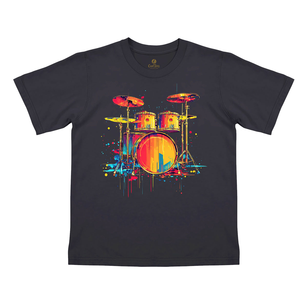 A estampa inspirada em Música traz uma interpretação artística do instrumento musical bateria, perfeita para você usar nos ensaios da banda, apresentações ou shows de música. Mostre seu amor pela música com essa Camiseta Infantil baterista criativa e diferente.